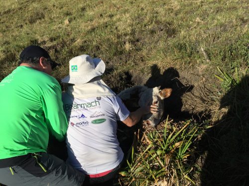 Na verdade era uma vontade de todos ali. Começaram os palpites, pois uma coisa era certa, se não ajudassemos o animal a sair do atoleiro, ele iria morrer ali. Tudo isso aconteceu muito rápido.