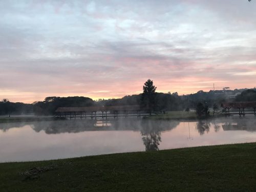 Chegou o grande dia: Às 6h30 da manhã do dia 9 de junho, o dia começou a clarear, era possível ver o vapor levantando dos lagos e a primeira geada do ano pelos gramados dos parques Barigui e Tingui.  Um lindo cenário e lá estava eu, Ana Wanke, chegando para marcar a caminhada para comemorarmos o Dia Mundial do Bem-Estar (Global Wellness Day).