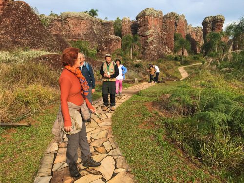O Parque estava vazio e pudemos caminhar tranquilamente entre os arenitos ouvindo as explicações do guia local. As formações surgiam nas mais variadas figuras. Algumas são muito fáceis de identificar, como a famosa taça, índio, noiva, que aliás fazem parte da lenda de Vila Velha (leia ao final deste artigo).