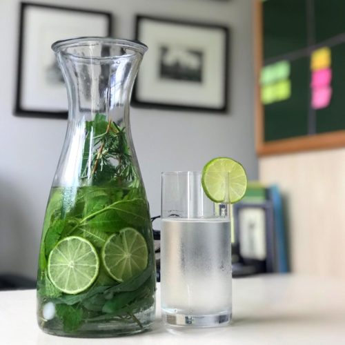 Aqui no escritório da Ana Wanke Turismo e Aventura, nós sempre buscamos meios saudáveis de alimentação e prática no dia a dia, temos até uma hortinha especial de onde retiramos quase todas as bebidas que consumimos no escritório, e a água saborizada é uma de nossas escolhas. A foto ao lado não me deixa mentir! 😀