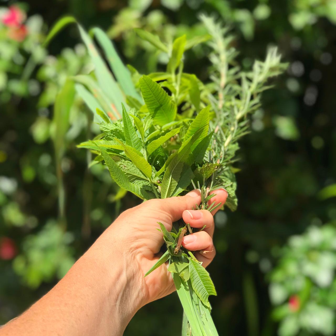 Neste dia, nós usamos Capim Limão, Limão, Verbena, Alecrim e Hortelã, tudo fresquinho da nossa horta! Huuuuum, delícia!!!