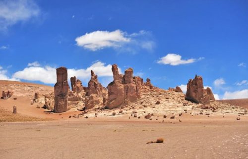 São formações imponentes que lembram monges (use sua imaginação). É um lugar impressionante, com formações que medem mais de 25m de altura. Para encher ainda mais os olhos, ao fundo encontra-se o Salar de Águas Calientes.