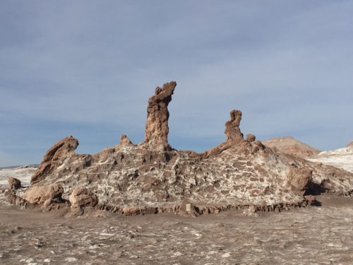 Trata-se de formações rochosas causadas pela erosão do sal e do vento do deserto. Essas formações têm como principais componentes o granito, pedras de quartzo e argila. Uma dessas esculturas, a maior delas na verdade, é chamada de Las Tres Marías por ter justamente o formato de três pessoas. Ao redor e ao fundo, um imenso deserto de sal completa a paisagem.