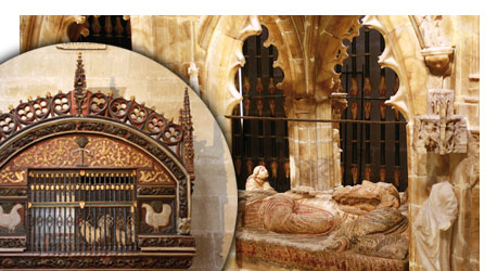 O sepulcro de Santo Domingo de la Calzada, em estilos românico, gótico e gótico tardio, é magnifico, mas o que atrai a atenção dentro da Catedral é o galinheiro gótico do século XV.