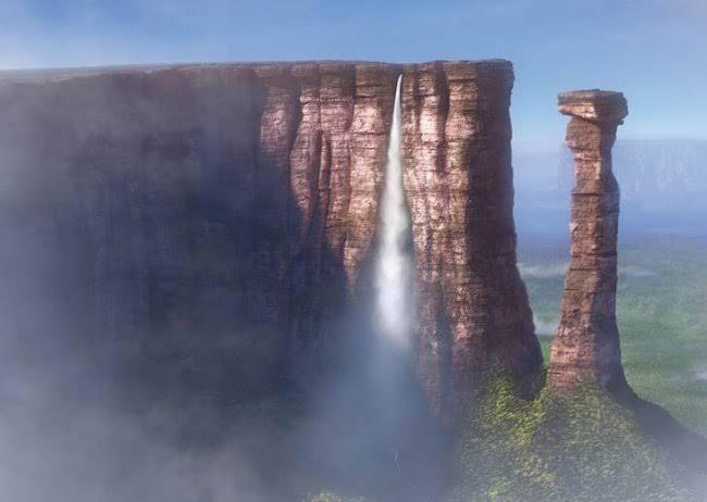 A história começa com um adorável relacionamento onde o casal (Fredricksen e Ellie) envelheceu sonhando em estar no “Paraíso das Cachoeiras” localizado na Venezuela. Não é coincidência! Esse lugar se chama Monte Roraima!