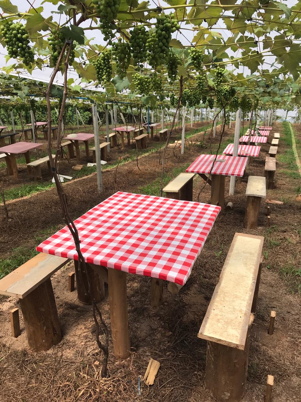 As uvas estarão ornamentando nosso café da manhã, ainda não estarão no ponto de colher. Nessa mesma propriedade teremos muitos pêssegos para você colher do pé, pesar e pagar.