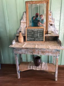 Vamos saborear um café da manhã na colônia sob o parreiral carregado de uvas antes de sair para uma caminhada.
